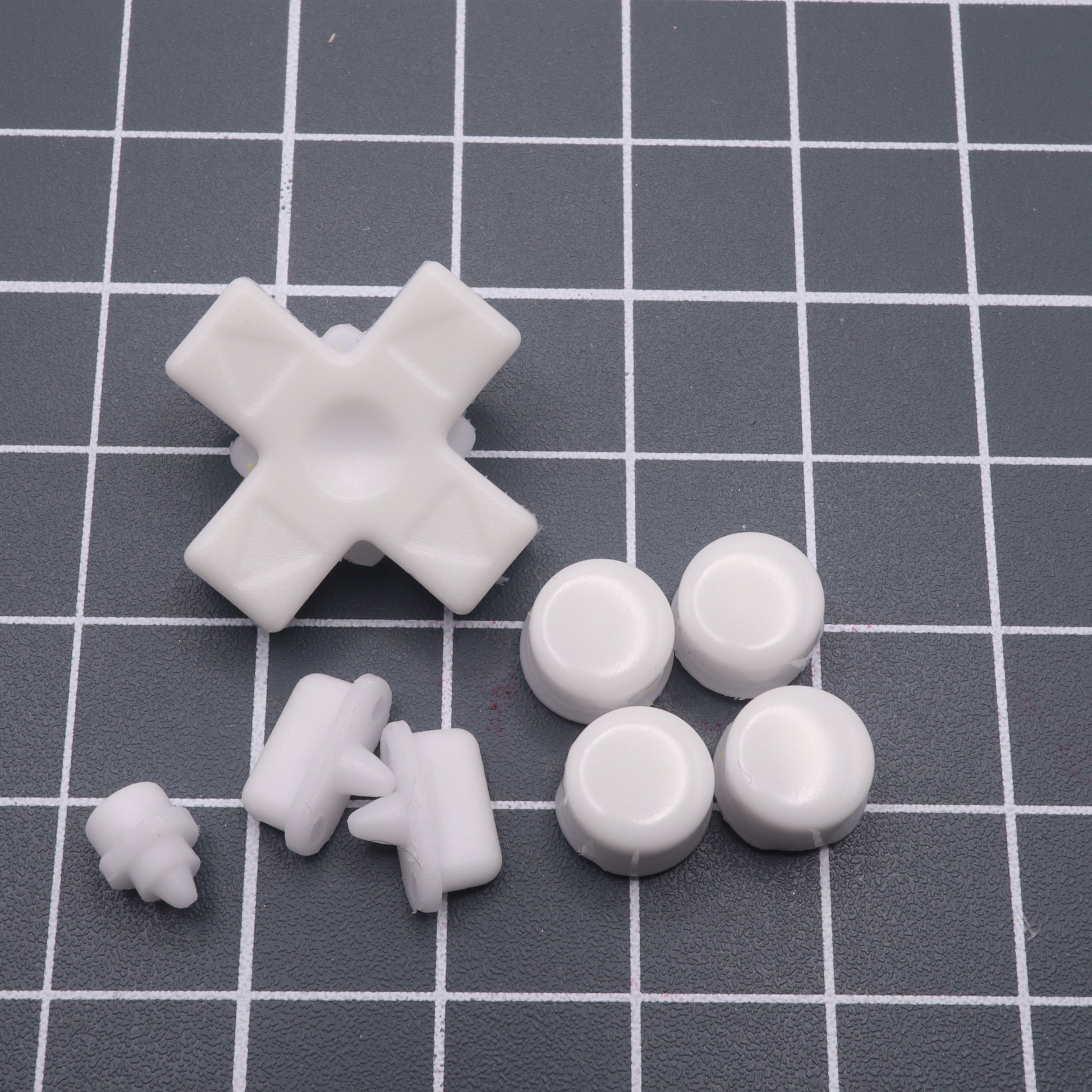 My buttons are hand-cast in my own molds, and feature a fully-functioning d-pad - unlike the ones from China and other retailers which do not hit the diagonals properly, and feel odd.